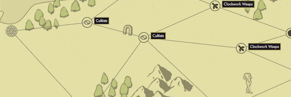 Choose where your fleet goes on its journey. Different destinations have pros and cons in terms of what enemies you fight, the rewards you get, the available upgrades, and your relationships with local factions. For example, you can befriend cultists, gaining their Worm Blessings and their aid in future battles.
