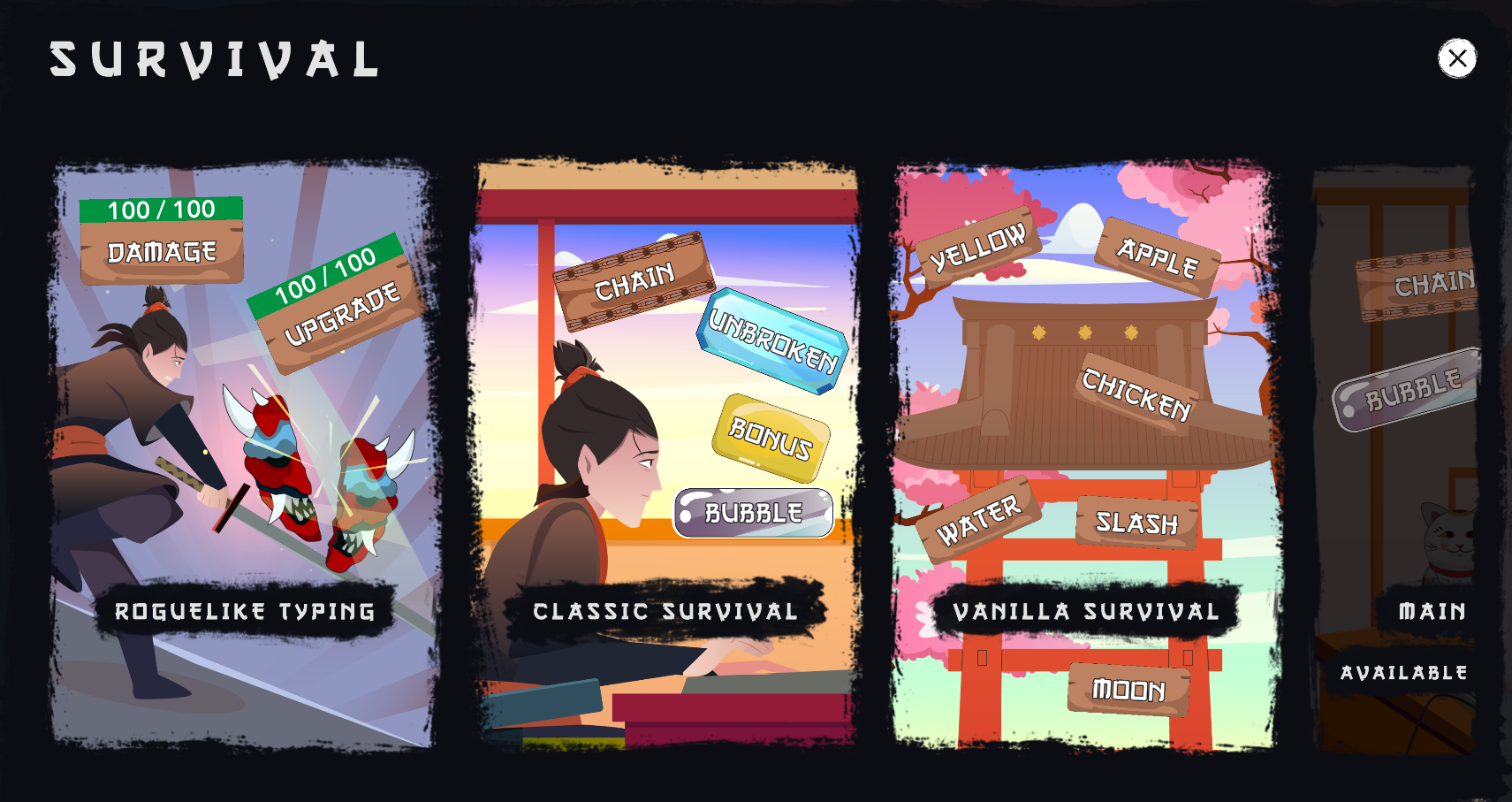 Mestre skrivning som en ninja, hvor du skærer ord og bruger kraftfulde evner. Mød episke bosser på tværs af historie, overlevelse, udfordring og andre spiltyper.