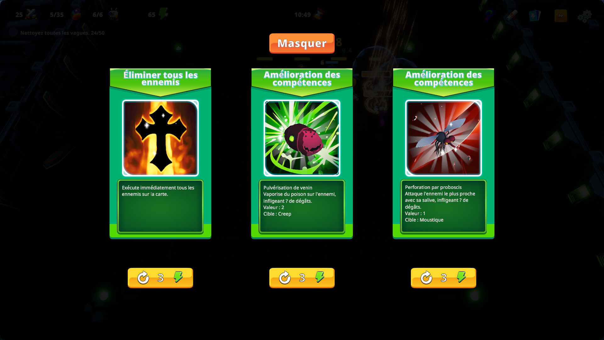 « La version actuelle en accès anticipé comprend un total de 50 niveaux et 60 vagues par niveau. Le jeu intègre un système de statistiques pour renforcer les unités, un système de niveau d'équipement pour renforcer l'équipe dans son ensemble, et un système de runes. »