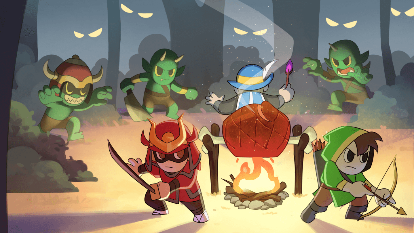 Now you must protect your campfire dinner from the incoming goblins, lizards and other hungry denizens! Can you survive the waves and enjoy your well-deserved dinner?