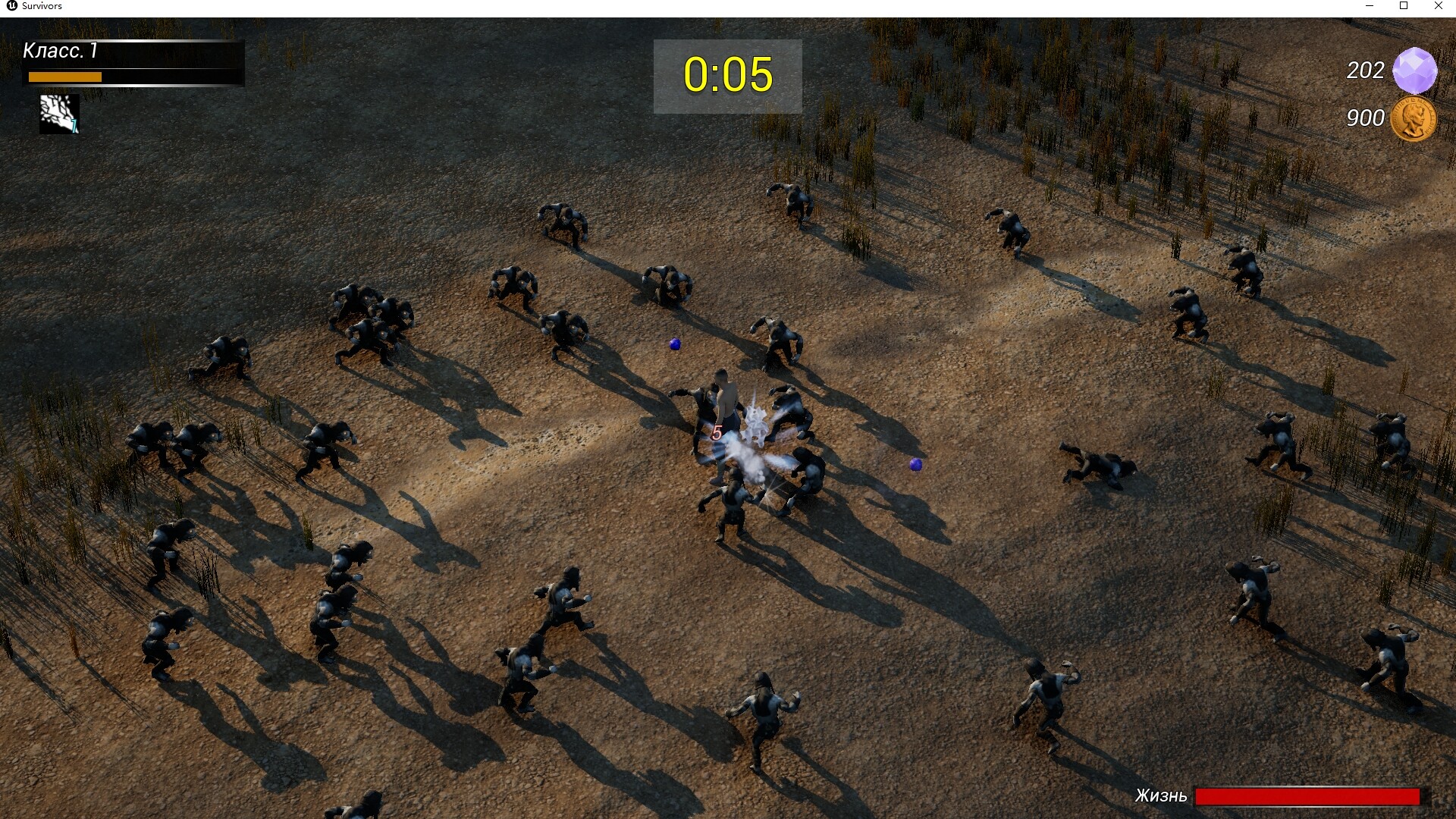 Главный герой управляет персонажем, бегущим по карте, и навыки выбирают ближайшего к игроку врага для удара. Монстры возникли со всех сторон и осадили их. Игрок должен выжить в окружении маленького монстра и победить врага.