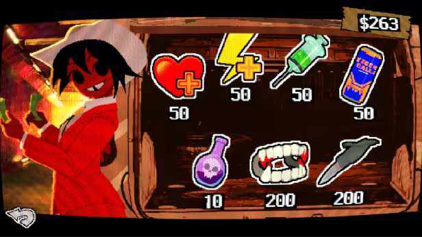 Between rounds buy items or power-ups to help you stay in the game. Additionally, you can spend some dosh and get your HP back up before the next fight.