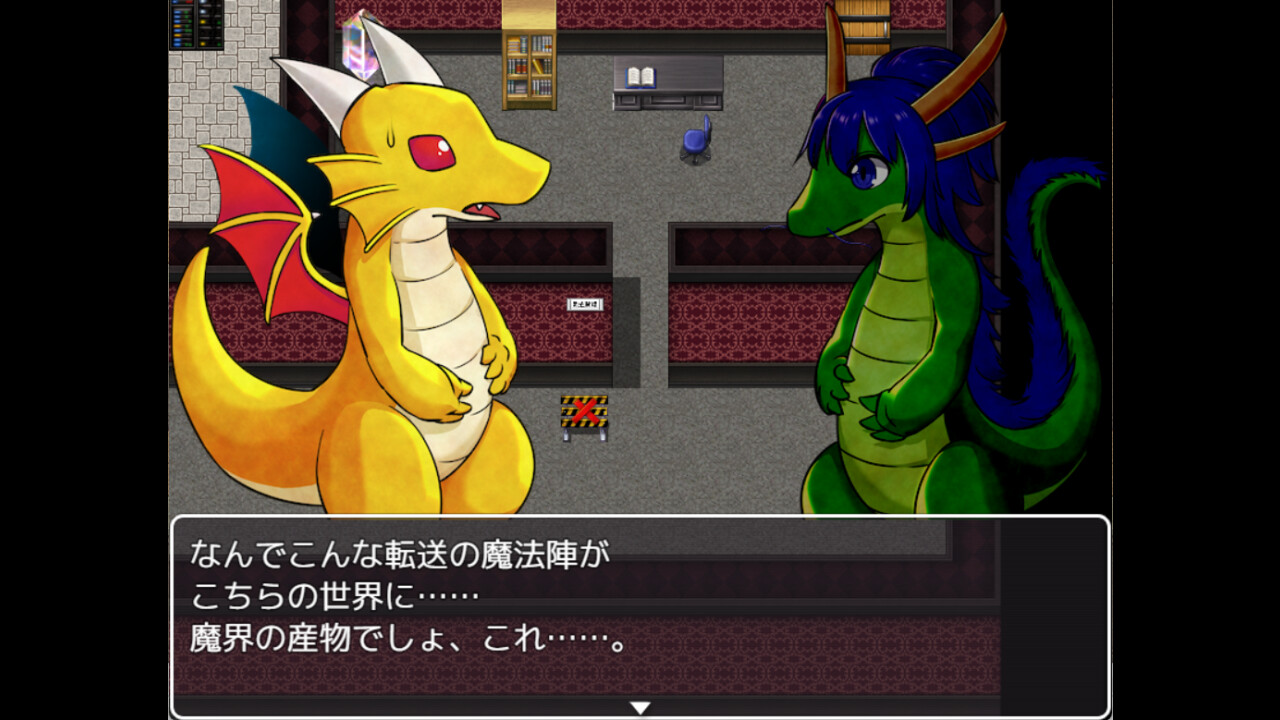 パズルに疲れたときは、RPGのようにその辺りにあるツボや置物を調べてみると、二匹のドラゴンのゆるい会話を楽しむことができます。冒険の舞台の謎の館の正体に迫ることもできるかもしれません。