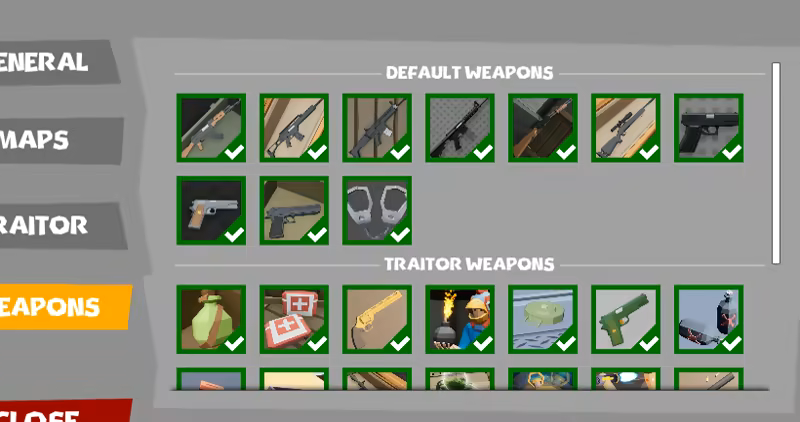 Betray your friends and kill every last Innocent to win. Use your earned Blood Credits [BC] to buy anything from straightforward land mines to invisibility, teleporter, and silenced snipers to get an advantage. Make use of the Traitor's safe space to hatch out a plan or go full tilt and shoot at everything that moves.