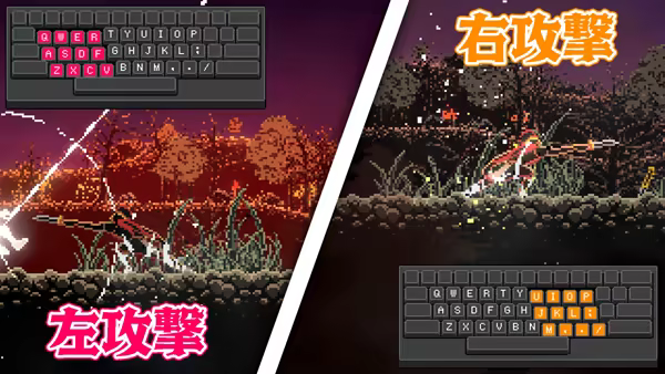 この時、同時に押すキーが多いほど攻撃範囲が広がります。