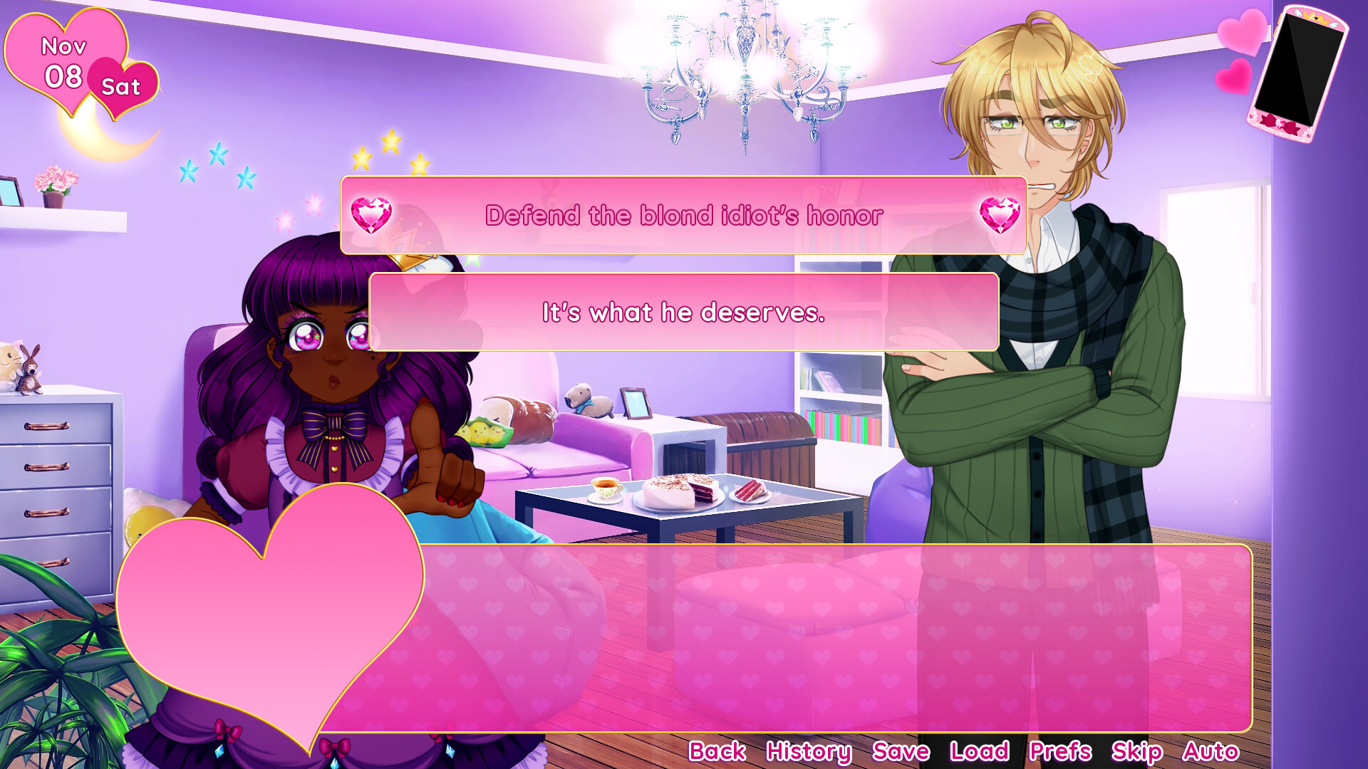 Magical Warrior Diamond Heart is made to be played multiple times. The game has scene variations depending on your relationship with the cast, and characters will react to and remember previous choices you've made. Characters may even react differently depending on how the player chooses to interact with others, meaning tons of content to explore!