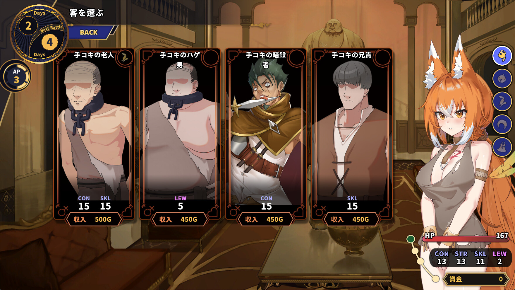 正統派JRPGの血を継ぎ、剣闘士の世界観を継ぐ本作では、プレイヤーは奴隷の少女・オレッティとして、陰謀が渦巻く王都ホレスの暗黒街に放り込まれ、生きる意味を探すことになる。彼女は違法な地下闘技場で命を懸けて戦い、娼館や酒場で働きながら、奴隷主グロスの貪欲を満たすために金を稼がねばならない。幾度もの戦いとエロフェンによる訓練を経て、オレッティは少しずつ力を身につけていく。豊富なスキル構成と育成システムを駆使し、鍛え上げた実力こそが、グロスの支配から脱する唯一の鍵となる!