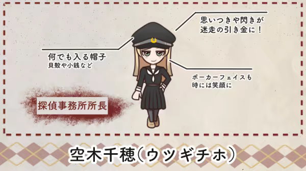 A novel-style mystery adventure game. Explore 2D top-down maps! Enjoy easy puzzles and comical text. Become the assistant to the lost detective Chiho-chan and help solve mysteries!