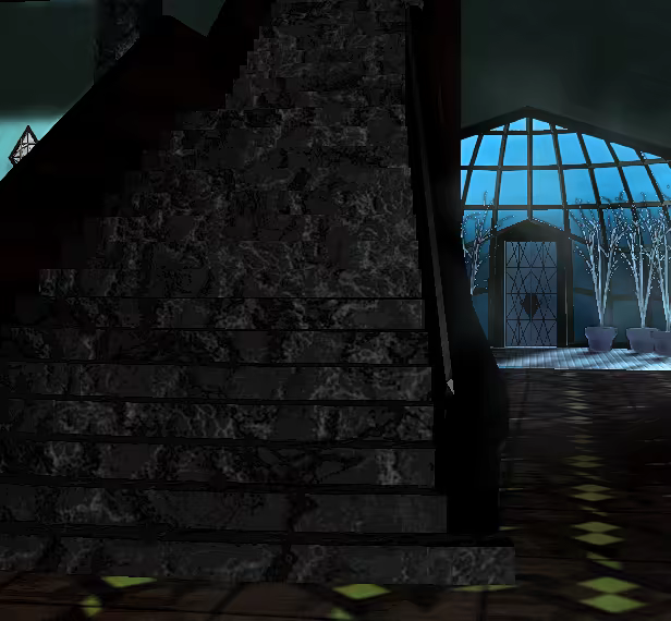 Search a 3D haunted mansion, using slide-based point-and-click navigation in the style of old-school adventure games, to find ghosts and spooky concept art