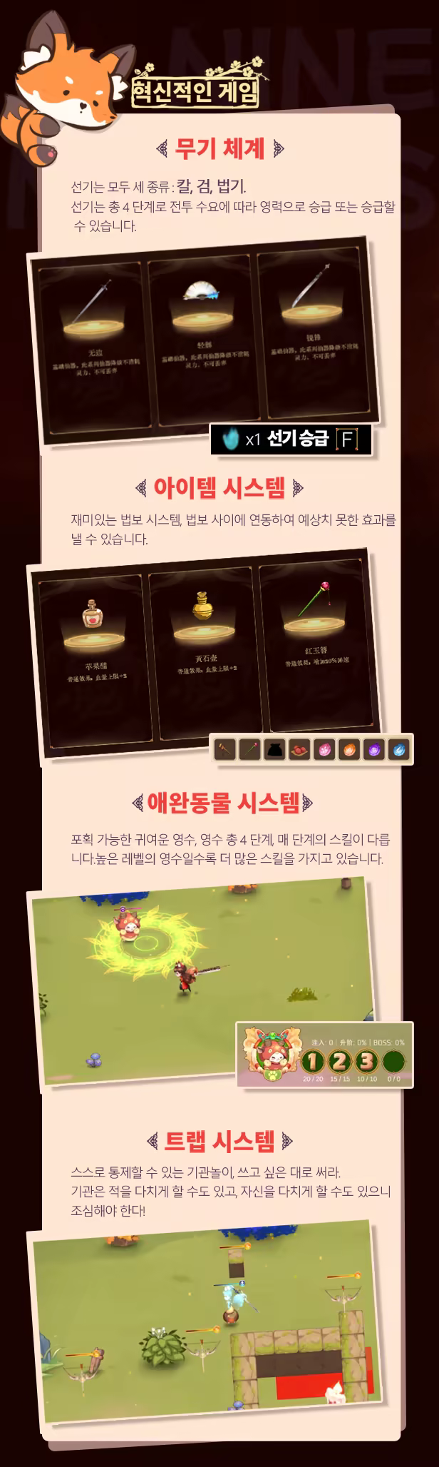 옛 전설에 따르면 한 선량한 소녀가 여우 신선"9야"의 생명을 구했기 때문에 그에게 진귀한 여우 꼬리를 하사받았다고 한다. 그후 그는 신기한 힘을 가진 작은 여우선으로 되여 손에 여러가지 선기를 들고 령수를 통제하였다.어둠이 내릴 때마다 그녀는 운해고목 한 그루를 통해 비경을 지나 각종 악령과 정괴와 목숨을 걸고 싸운다. 하지만 그녀는 그 여우 신선을 찾아 꼬리를 여우 신선에게 돌려주고 싶었어요...