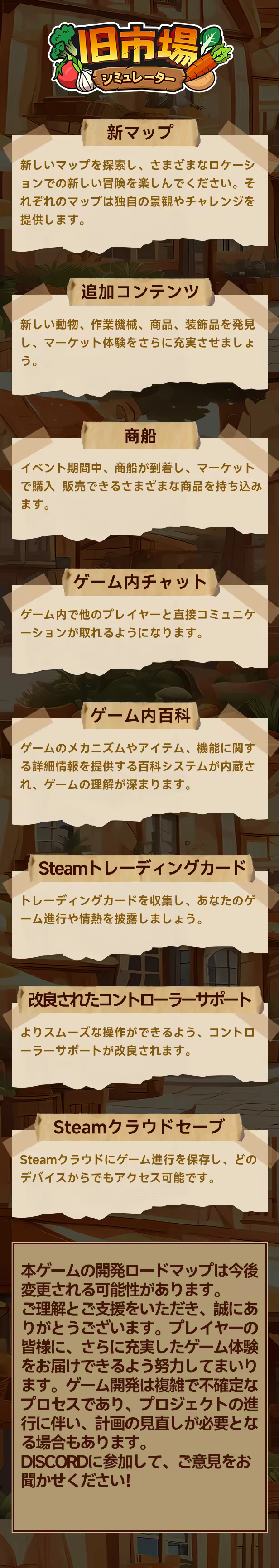 違った人生を体験してみたいですか?例えば、市場で小さな店を開くのはどうですか?《旧市場シミュレーター》で店主としての体験をしてみましょう!一人でも、仲間と一緒でも、賑やかな市場で自分だけの小さな店を経営します。埠頭から仕入れ、農場での栽培、スタッフの雇用、店の装飾、すべてが楽しい!突発的なイベントに対応し、ビジネスチャンスをつかみ取り、最も成功した店主になりましょう!