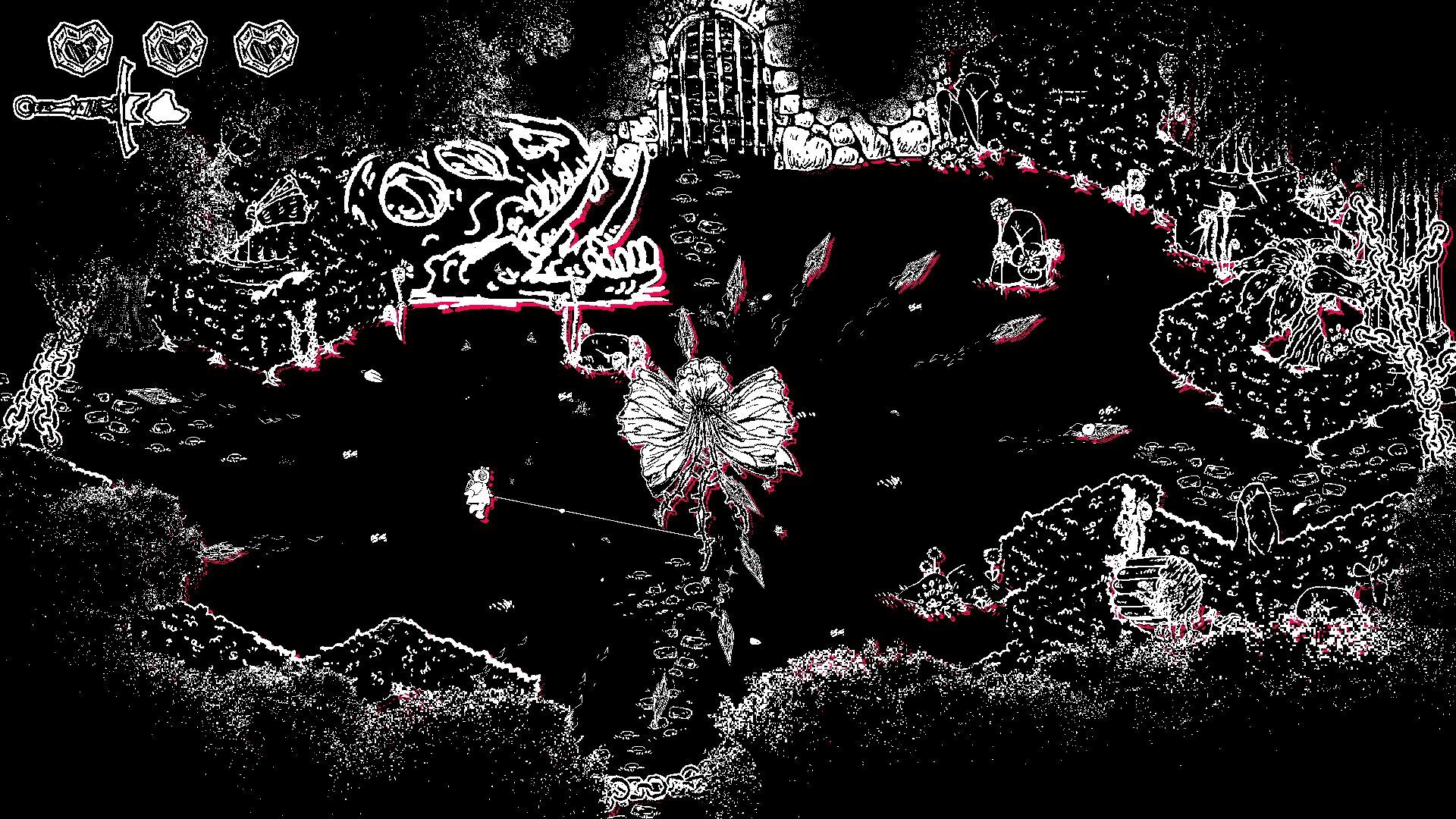 A hand-drawn, pacifist, folkloric, bullet-hell. Grapple and dance around monsters to collect their shattered stars, weave your way through twisting paths, encounter strange folk, uncover ancient magic, and evade forgotten gods in this frenetic 2D action-adventure.