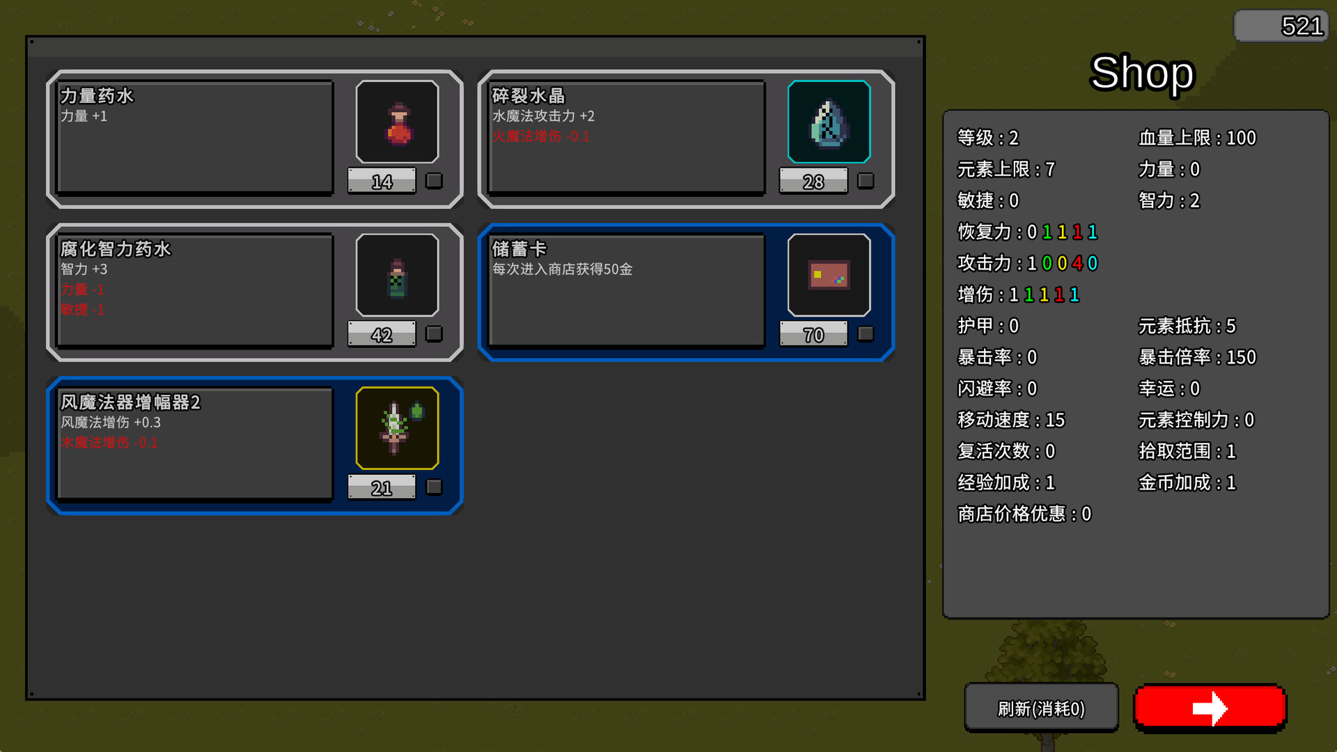 通过击杀敌人获取金,到商店购买各种道具强化自身