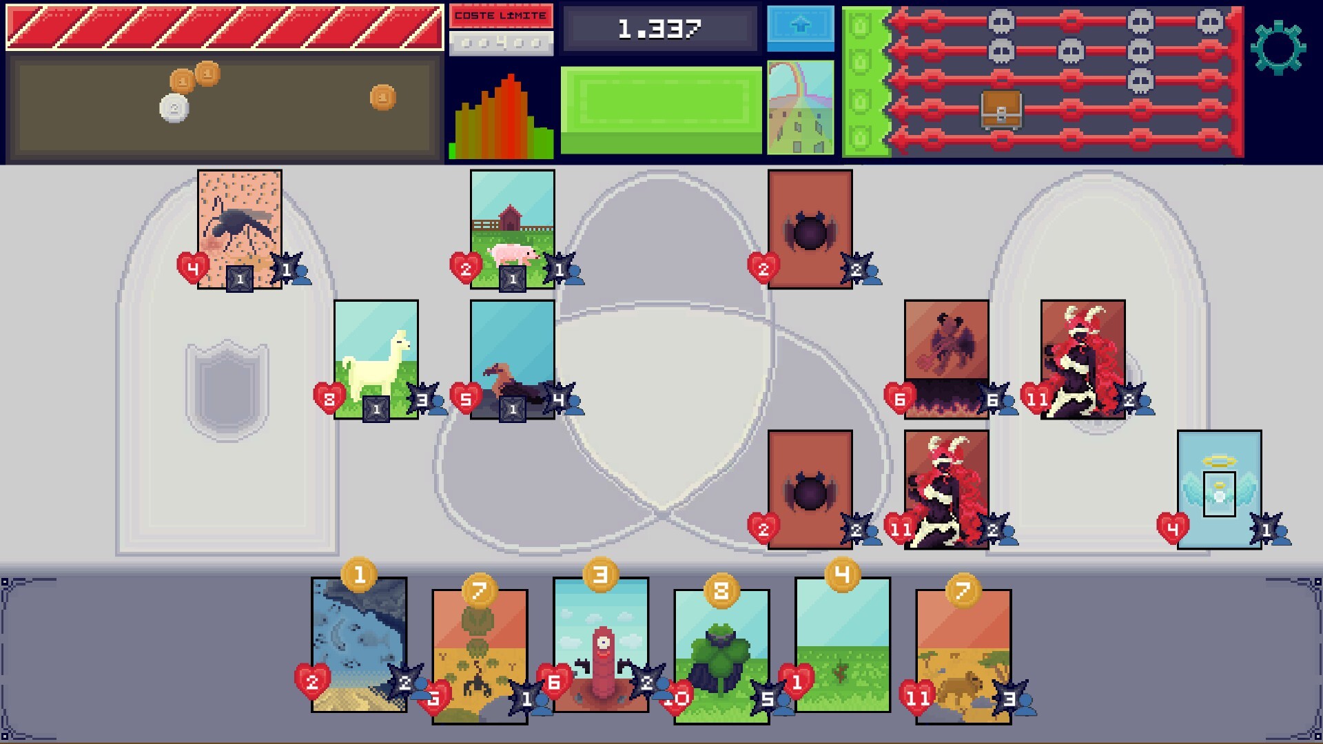 Each turn increases the power of the cards you can play and the enemies that will appear... The longer you survive, the riskier and more powerful your decisions become. You will be able to play your most powerful cards when you face the Boss.