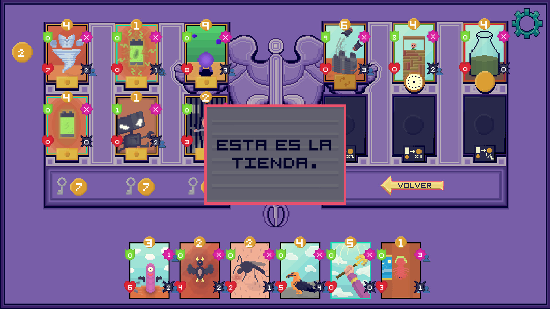 En este juego Roguelike de Construcción de Barajas, te enfrentarás a dioses y criaturas mitológicas. Compra cartas pasivas y modifica tu mazo para adaptarlo mejor a tus tropas, acciones y cartas de ayuda a medida que avanza tu aventura para vencer a Dios, Satanás ¡e incluso a la propia Justicia!