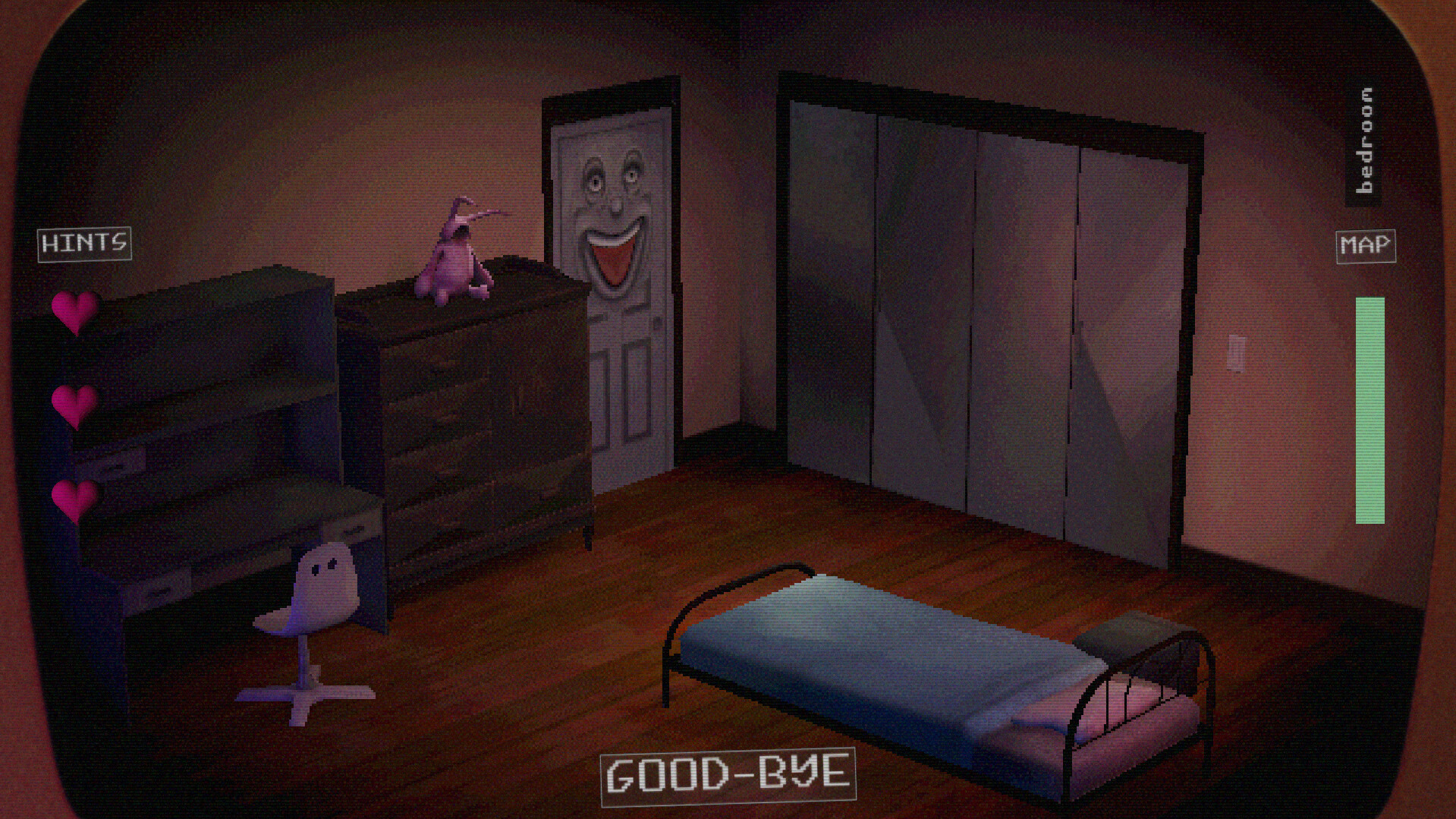 • Explore The House, room by room, in a realistic VHS aesthetic.