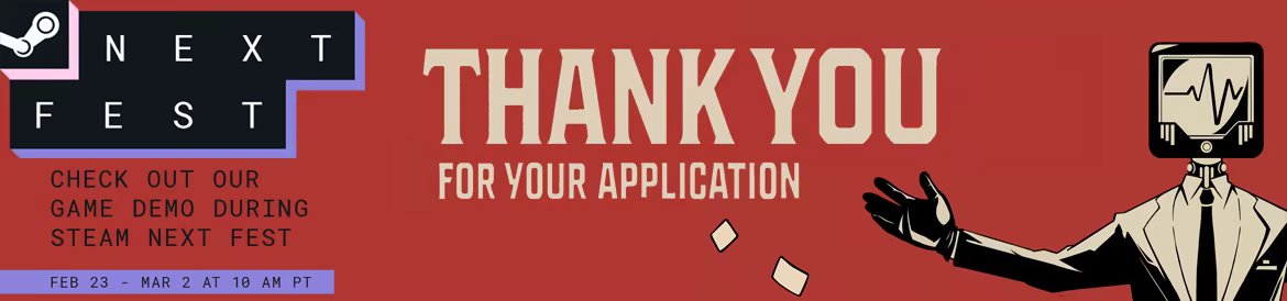Thank You for Your Application is a narrative-driven interview simulation game. You play as a fresh graduate who has the rare chance to join the largest company in Aeropolis as an interviewer. You’ll screen resumes and issue thank letters for various reasons.