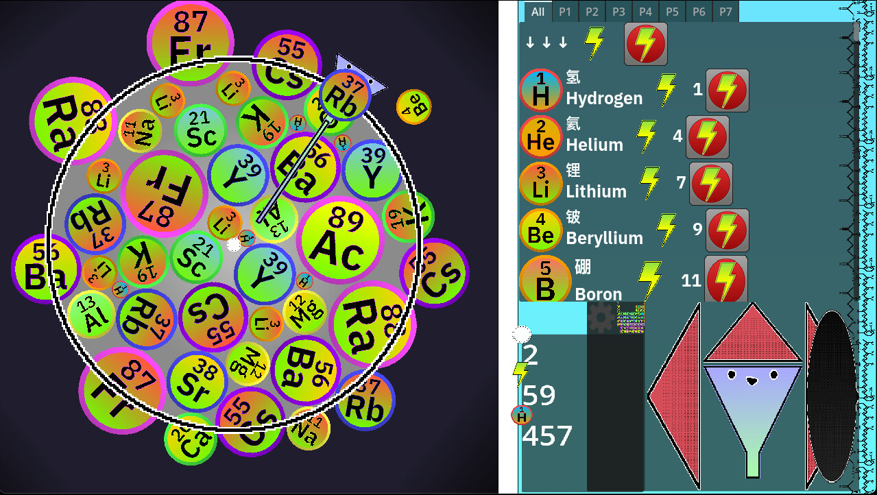 这是一款下落益智游戏,您要投掷 118 种不同元素,并争取获得高分。 不认识这些元素也没关系!你能看到第 118 个元素吗?