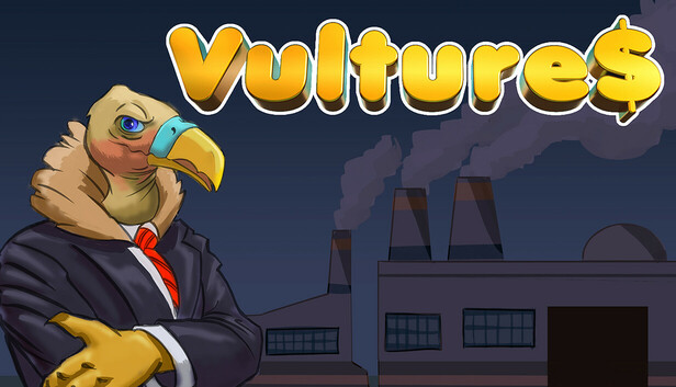 Vultures is a manufacturing simulation game with a capitalist twist. Build an industrial empire, play the stock market for quick loot, and flood an ever-changing economy with cheap junk to buy, bribe, or bankrupt your way to the highest perch.