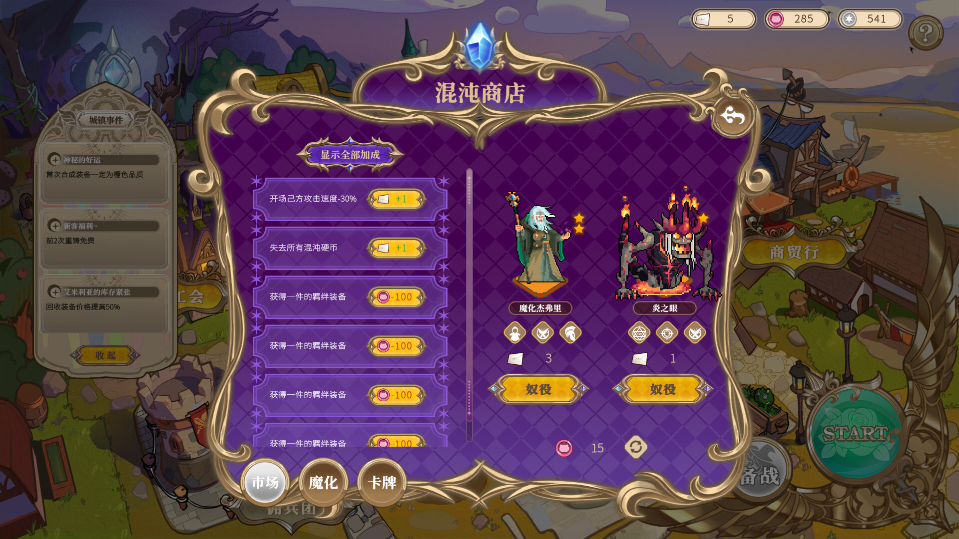 • 混沌商店:可以通过获得负面减益效果换取混沌币或者奴役契约,可以在混沌商店奴役反派BOSS或魔化装备。