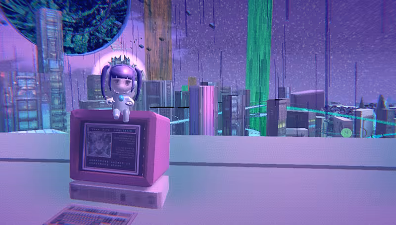 ANGEL imbues breakbeats with networked aesthetics in this rhythm/racing adventure. In a network devastated by digital climate change, what does it mean to be connected?