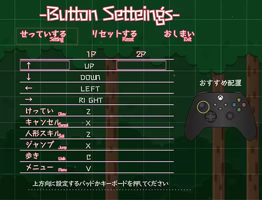 (Note: Menu navigation in the title or config screens cannot be done by Player 2.)