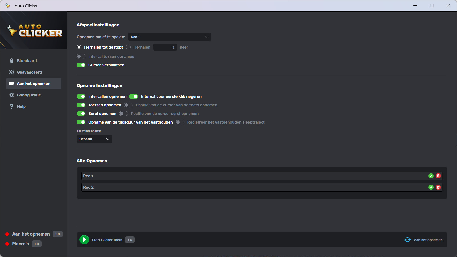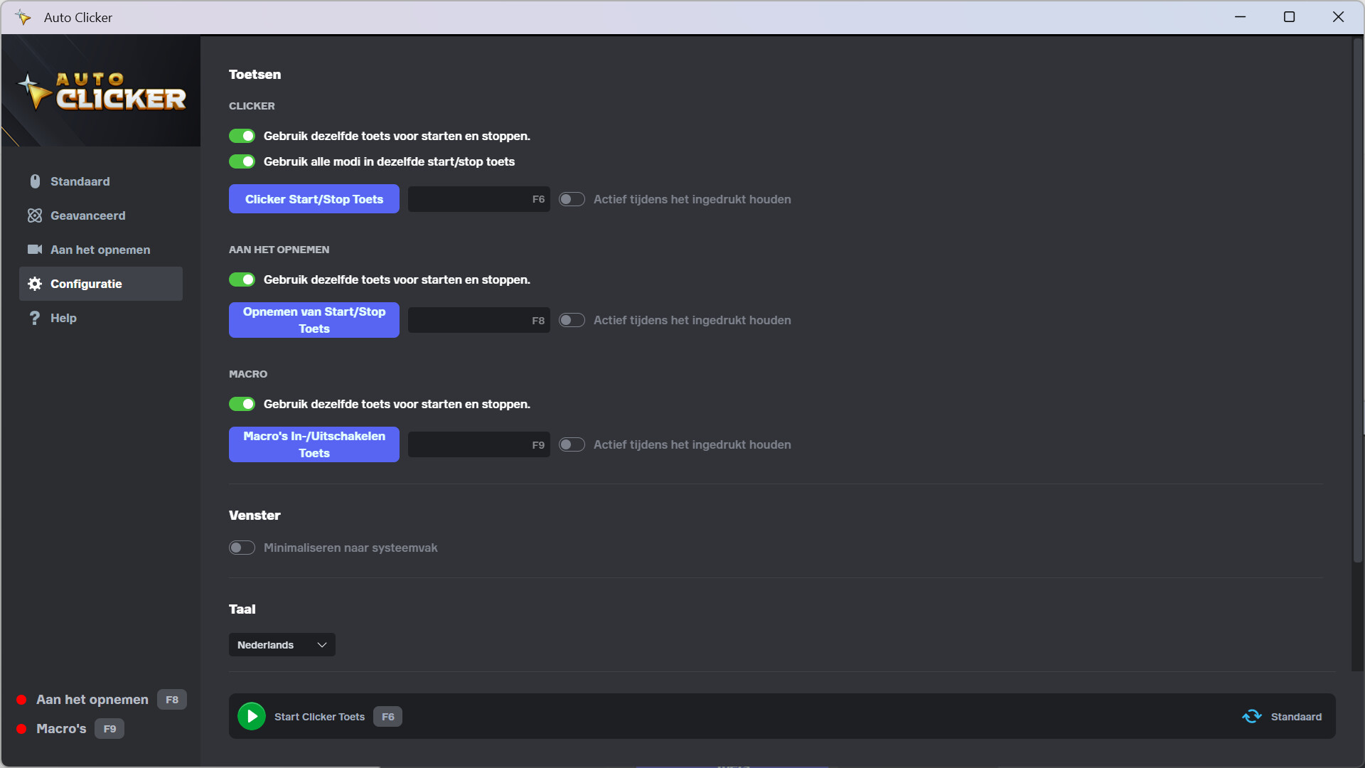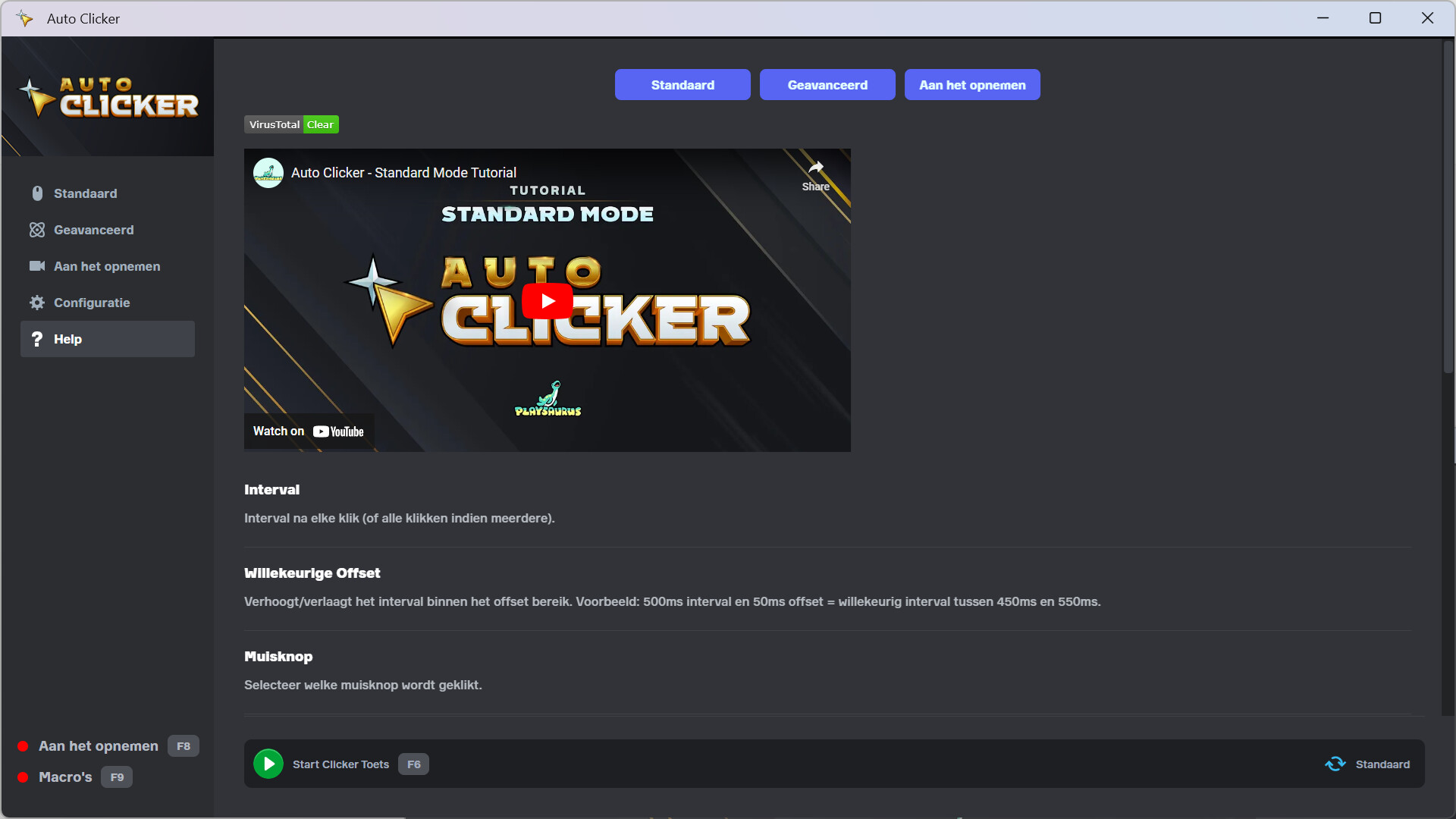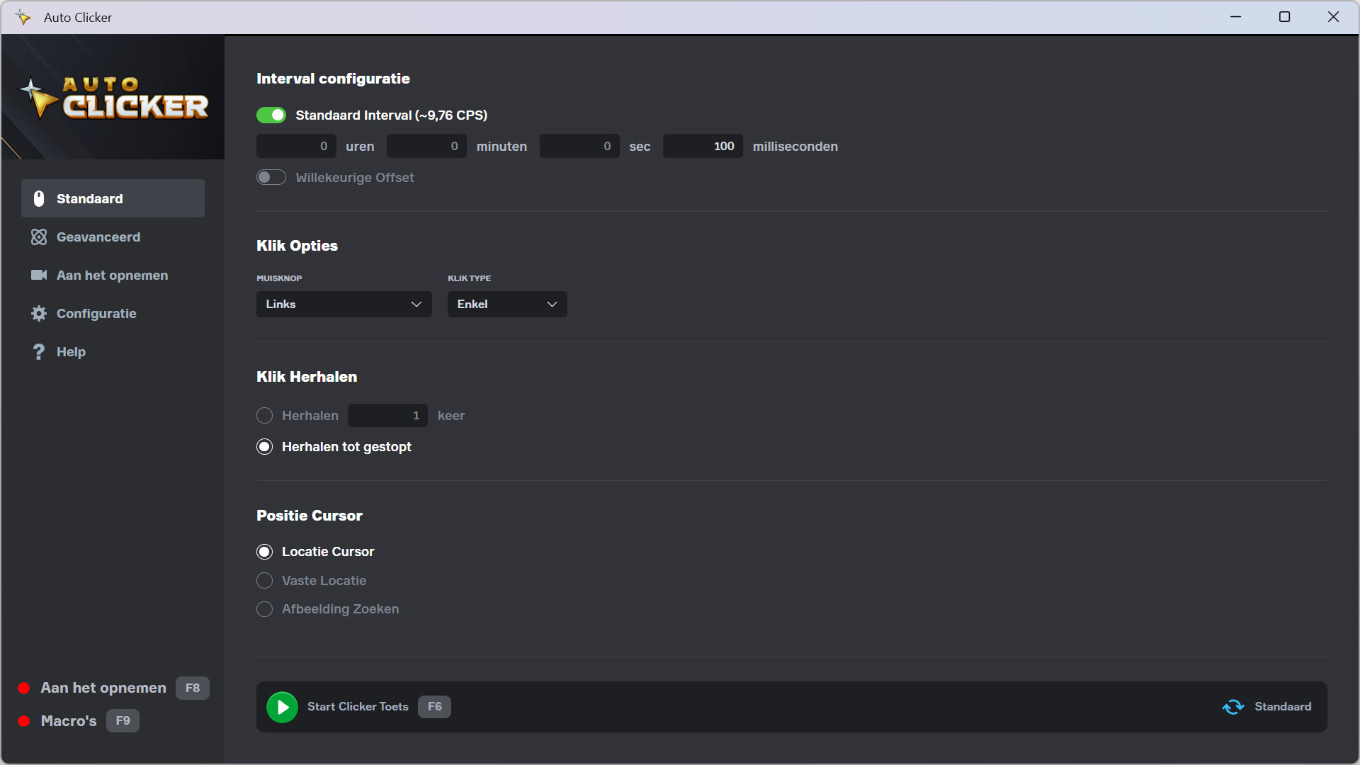 Begin met de Standaard modus als je een eenvoudige auto clicker nodig hebt die snel ingesteld kan worden: