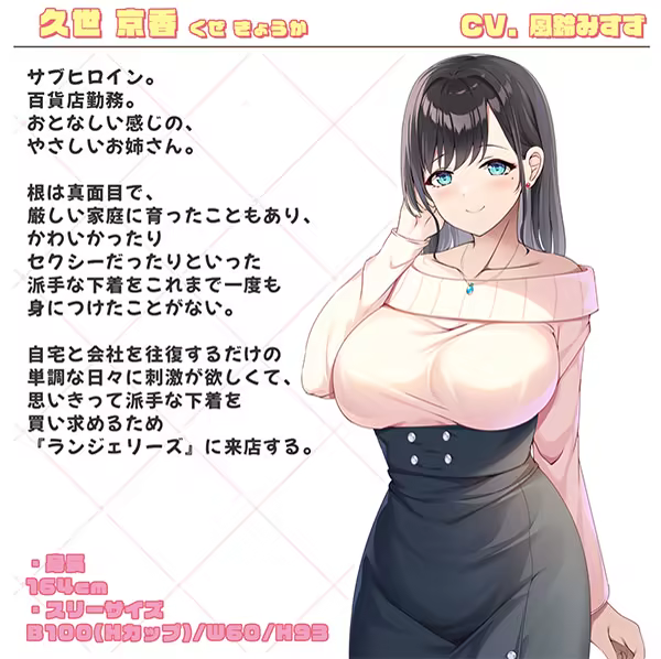プレイヤーは高級女性下着専門店『ランジェリーズ』の店員になって、お客さんの女性たちからさまざまなリクエストを聞いて、彼女たちにぴったり合う下着をコーディネートします。