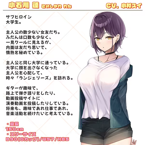 莉子は高級女性下着専門店『ランジェリーズ』の店員として働いている。‥‥が、お気に入りのバンドの全国ツアーを追っかけるため、2ヶ月間、『ランジェリーズ』を休みたい。しかし、仕事に穴を開けるわけにはいかない。