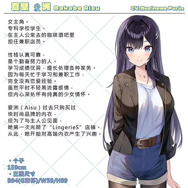 在「LingerieS」工作期间,苍逐渐了解了女性内衣的深奥学问,并与来店的女性顾客交流,建立起深厚的羁绊——。
