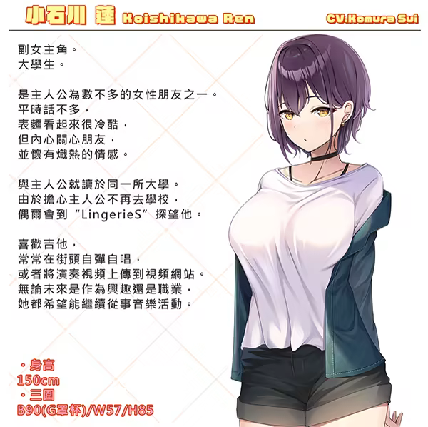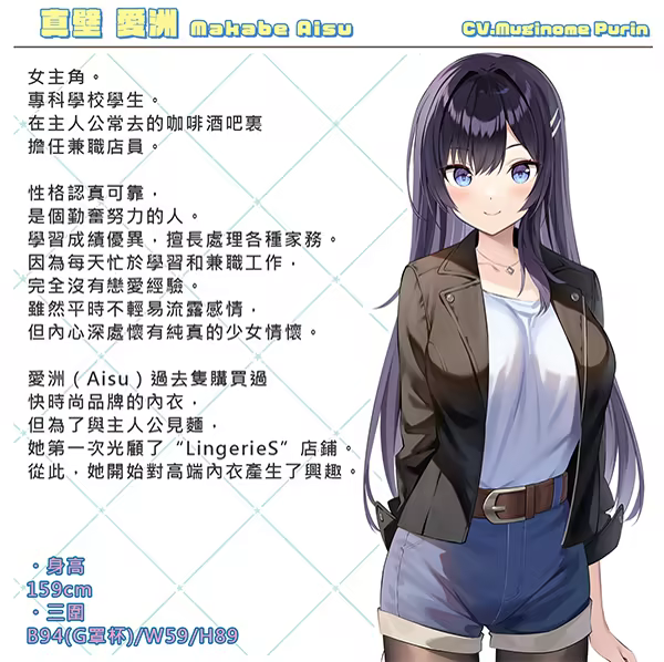 在「LingerieS」工作期間,蒼逐漸了解了女性內衣的深奧學問,並與來店的女性顧客交流,建立起深厚的羈絆——。