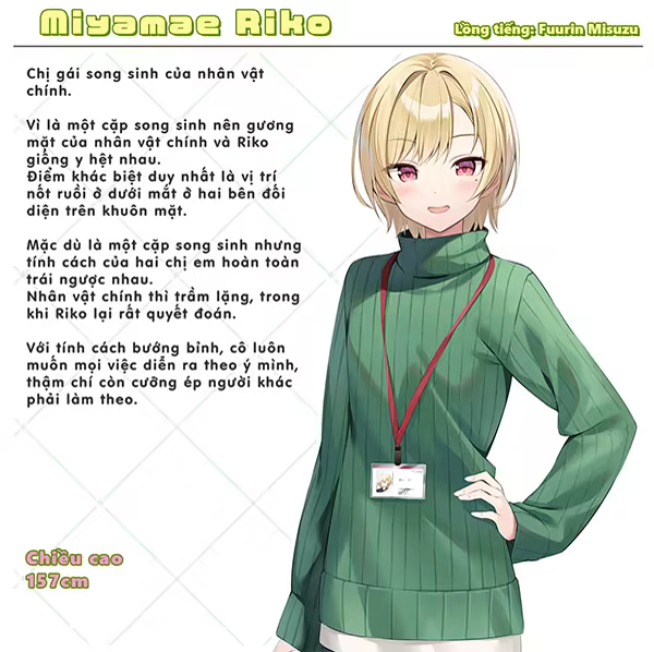 Tất nhiên là ban đầu Aoi liên tục từ chối thẳng thừng và rồi sau khi Riko năn nỉ đến tuyệt chiêu cuối. Aoi đành phải miễn cưỡng nhận lời.