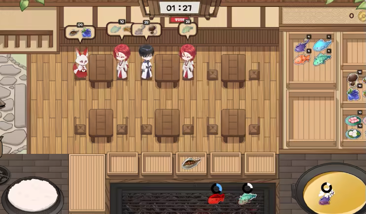 Cook the ingredients you've gathered and serve the food that customers want.