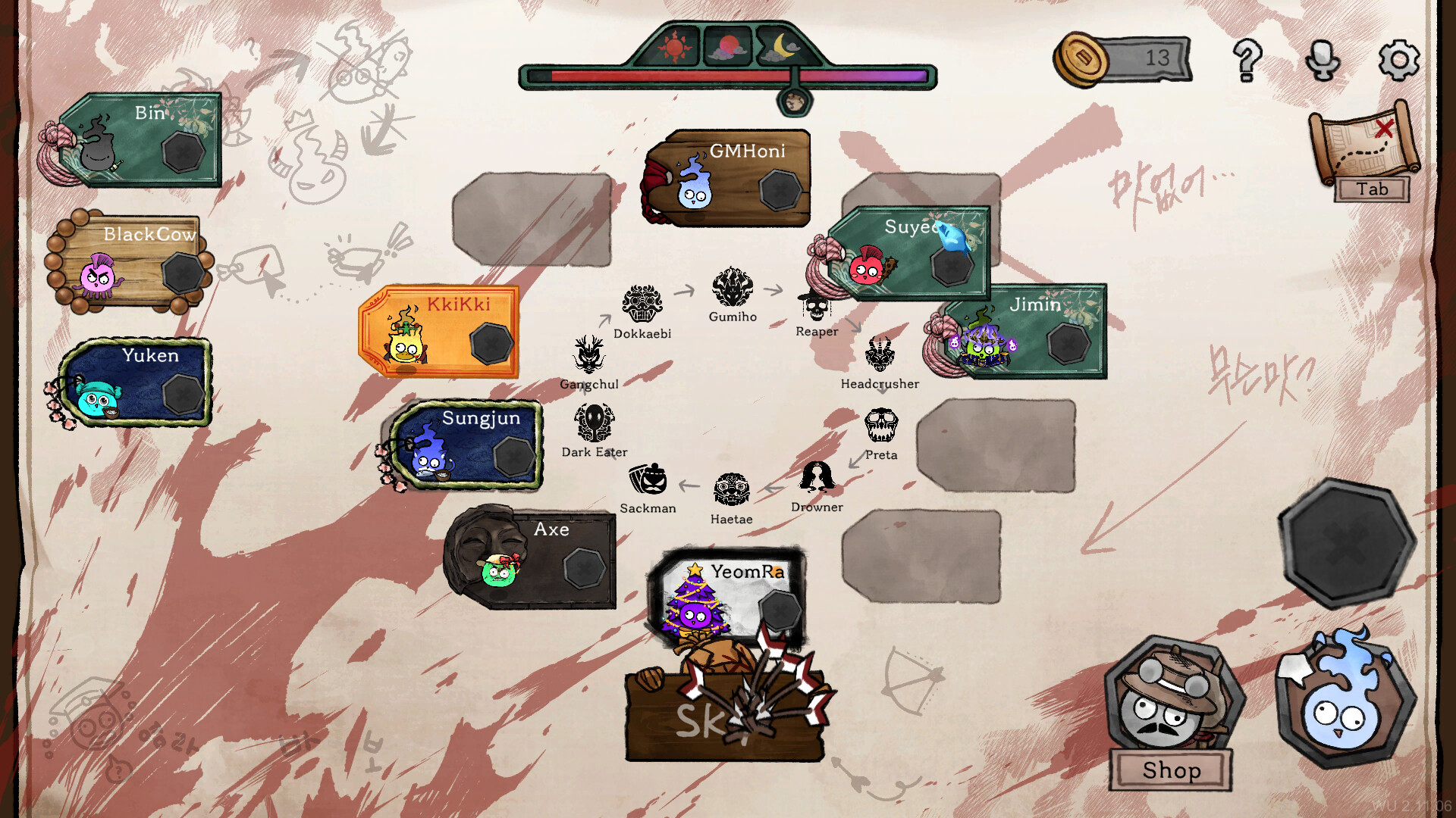 《Who's Next?》是一款自由竞技的尾巴夺取社交推理遊戲,以傳統韓國地獄為背景,展開幽靈與鬼魂的屠殺,專注於個人生存競爭,而非團隊對抗。