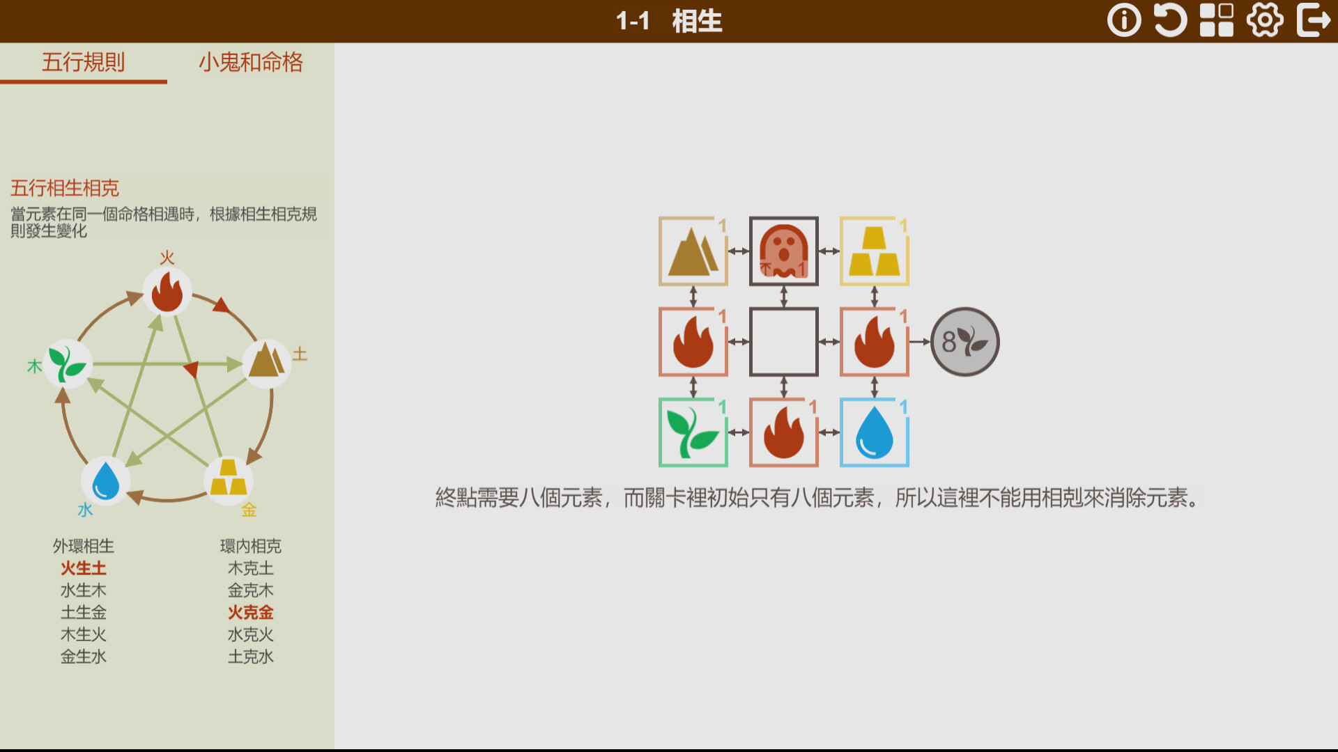 基於中國古代哲學五行演化思想的推理解謎遊戲,深入淺出地展現萬物生成及演變的過程。 在這裡,你將化身為貪婪鬼、機靈鬼、吝嗇鬼等,你將擁有不同的技能,借助五行的力量一路向前探索、突破重重關卡,而所有的所有只為導向這樣一個結果,你想要到達的地方。