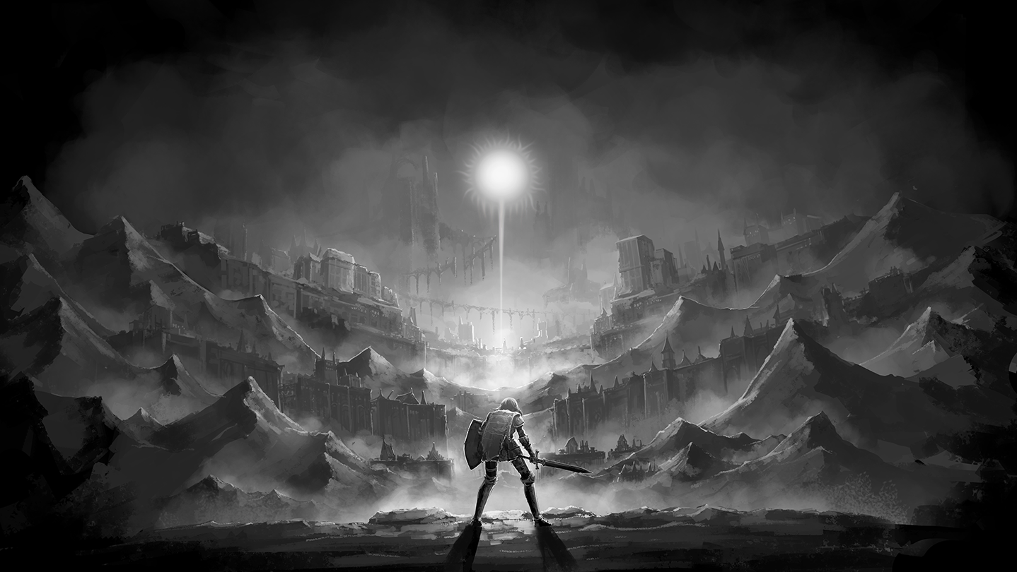 [DARK SUN] is an action game with 2D black and white graphics. It consists of Souls game + Castlevania style scenes.