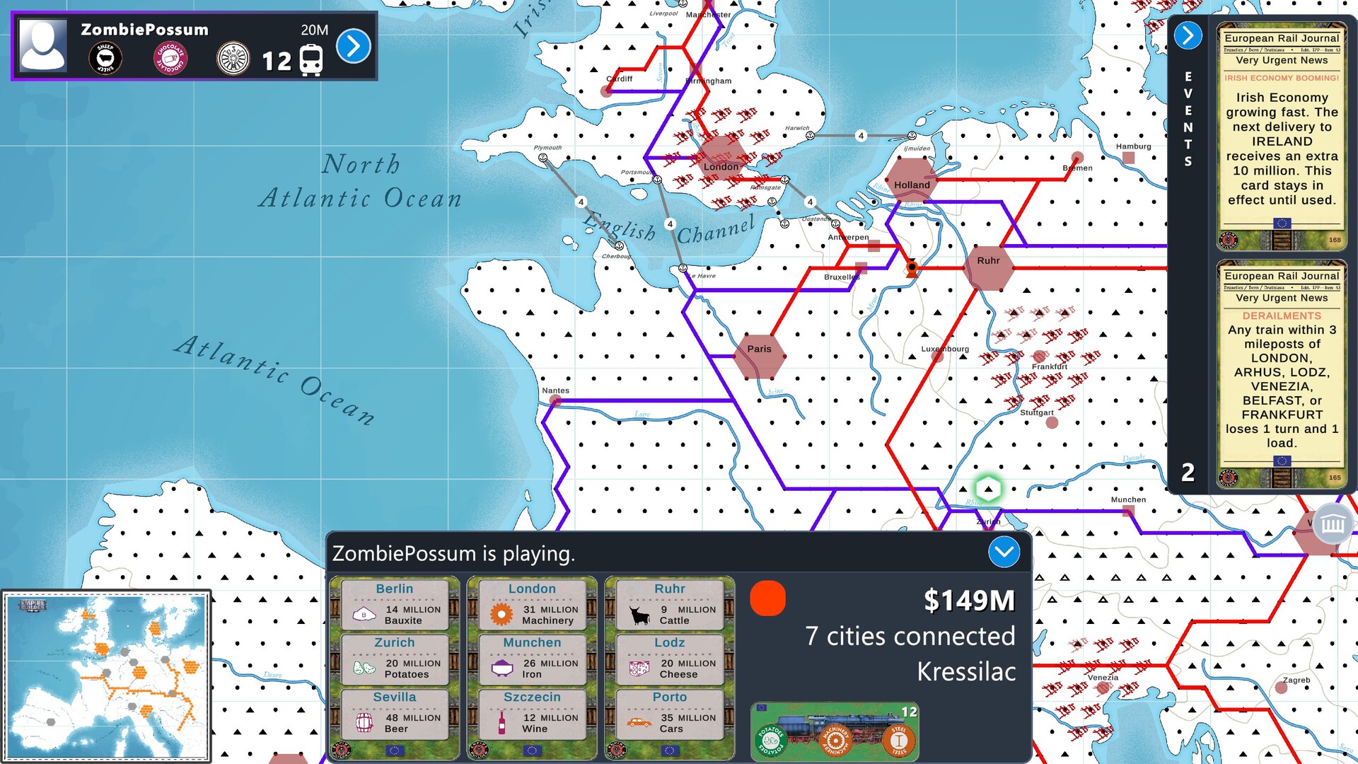 Zombie Possum Games Inc, in collaboration with Darwin's Toys Inc, is excited to bring the Empire Builder series of board games to your PC. As fans of these games, we at Zombie Possum Games Inc sought more time in our busy lives to enjoy them. To our surprise, we couldn't find any playable versions online using the services that we love like Steam and Xbox. That changes now. With the release of Empire Builder - Europe and the license to offer all other installments in the franchise, we are partnering with Darwin's Toys to publish the latest versions on Steam, iOS, Xbox, and other platforms.