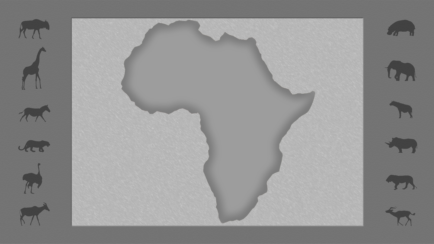 The game is played on a hexagon-grid map showing Africa from Khartoum to Capetown and Lagos to Mombasa. The periphery of this map, showing the territory known ca. 1820, is filled in; the interior is blank and ready to be explored by the player.
