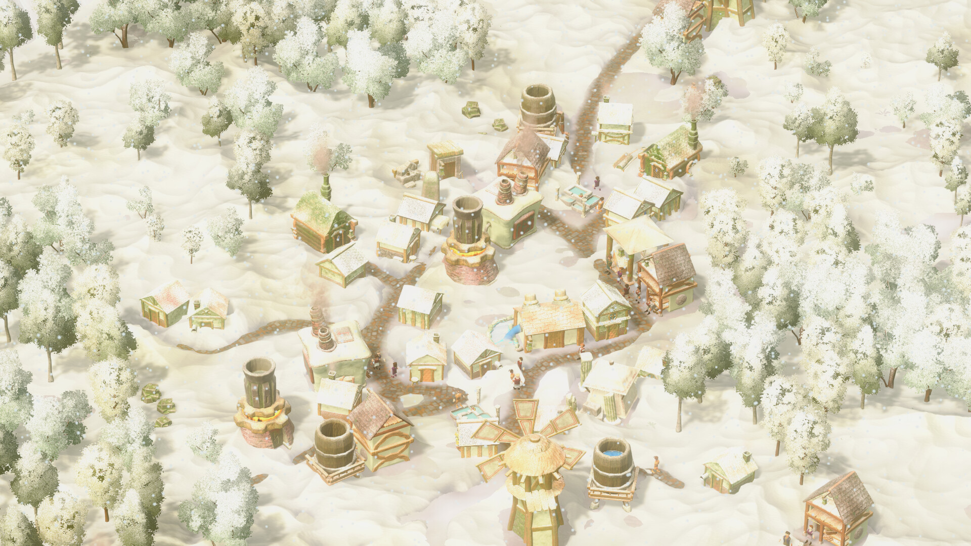 Your logistical & economic skills are essential to plan out your settlement successfully. All resources will need to be moved across a complex web of depots to be used by your buildings (there are no magic central inventories here!), and placing your production chains too far apart could be the difference between the settlement’s life & death. You should build new houses to grow your settlement, but beware of hidden costs! If you can’t meet the needs of your population, your settlement may pay the ultimate price! And the threat of the coming winter is always present.
