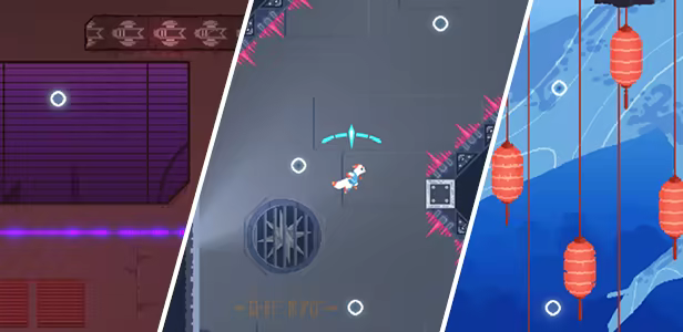Attach your energy rope onto rings and even enemies to drag yourself up and move in the air. Use your dash to evade attacks and adjust your trajectory with precise timing. Eliminate the Selvos with a single swift pierce to make your way up.