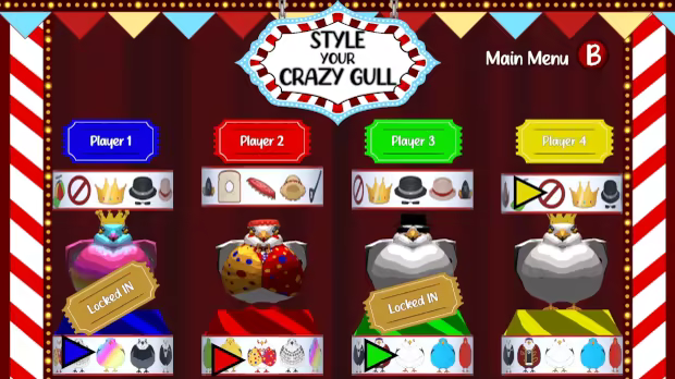 Gather around, Gather around! The Crusty Carnival is in town! Bringing with it lots of food and fun and the Crazy Gulls are here to indulge to their hearts content! Round up your friends for a 4-player local multiplayer brawl to see who among will receive the honor of Top Gull!