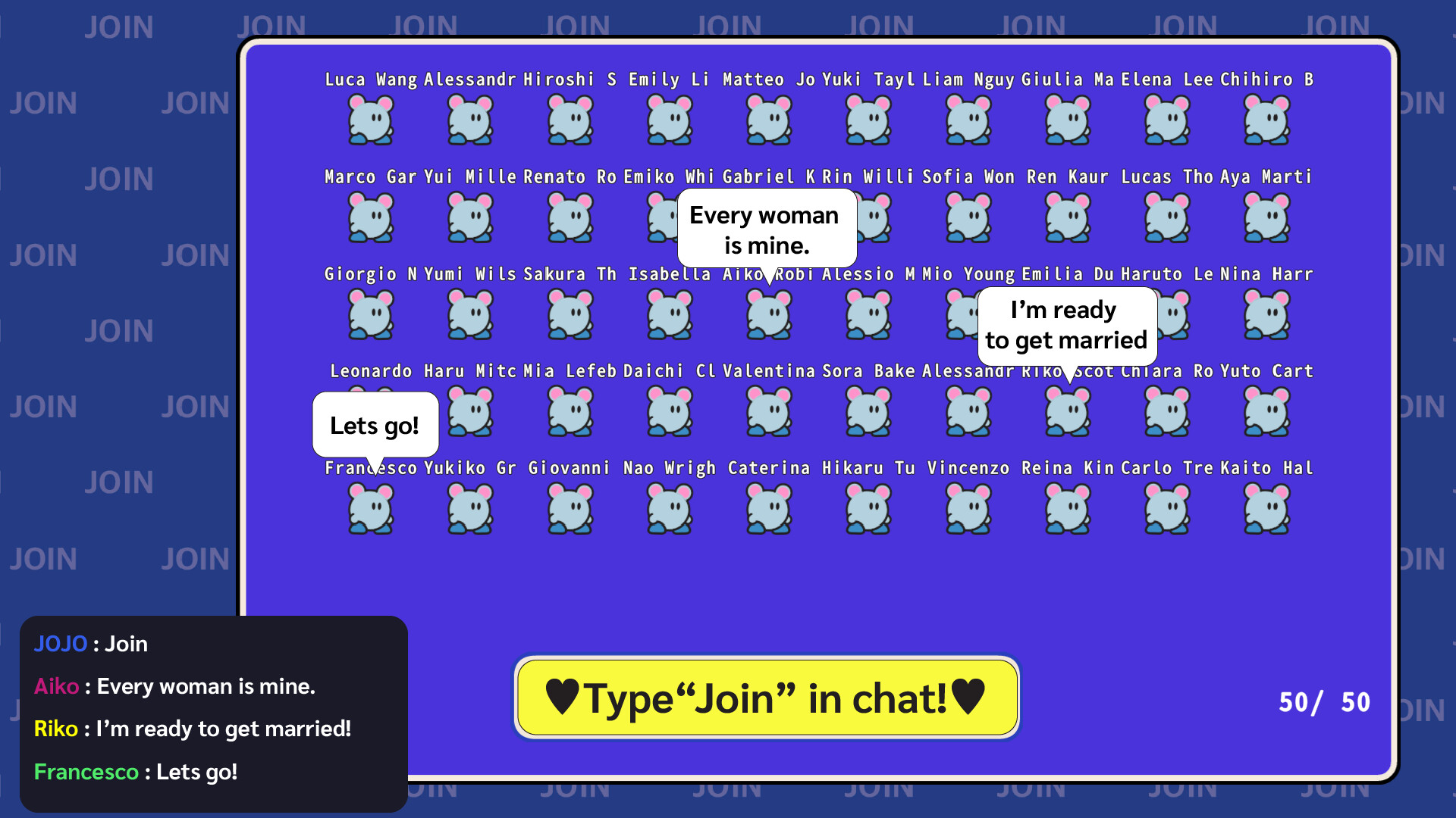 The goal is to collaborate with viewers and streamers to marry all viewers!❤️