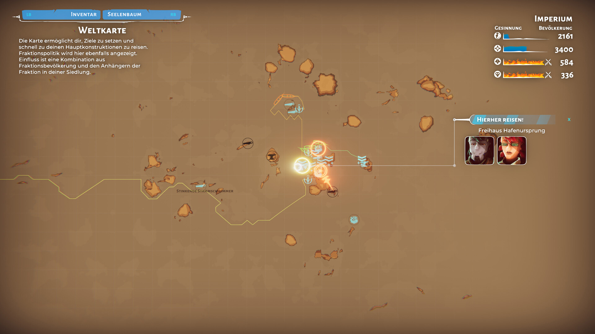 Die Währung, die Diplomatie, Armeebau, den Kauf neuer Orte und einzigartiger Gebäude antreibt, ist von Ressourcen getrennt; sie läuft auf einer Währung namens Splitter. Du gewinnst sie durch Bevölkerungswachstum, Handel mit anderen Fraktionen oder als Belohnungen aus Kämpfen.
