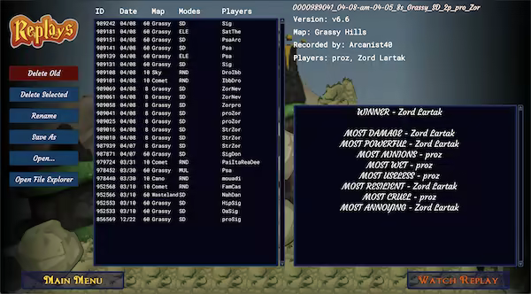 Save replay files after spectating or playing a game and watch them whenever you like, on demand. Replay files can also be shared with others, accessible via the Main Menu!