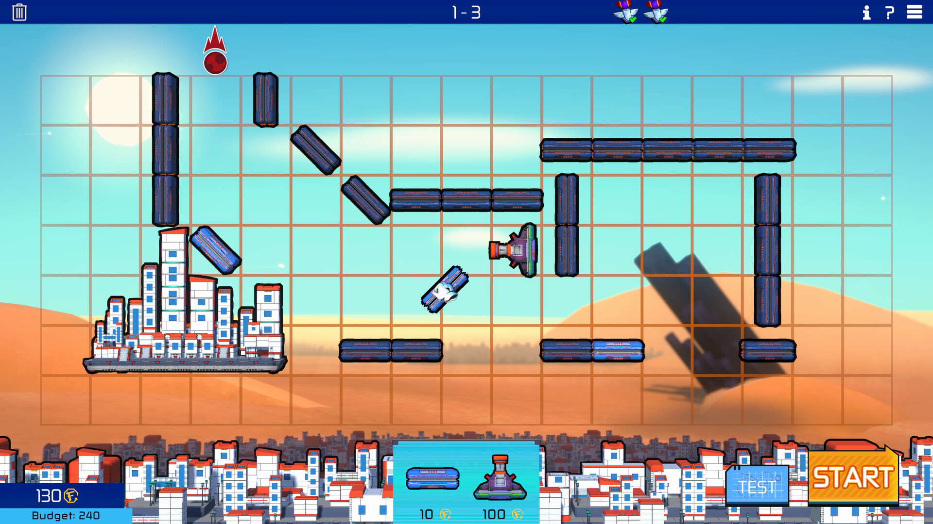 ¿Crees que puedes encontrar una solución más eficiente? No temas. Puedes iterar entre diseños distintos muy rápidamente. Puedes añadir, destruir o mover tus defensas infinitamente y sin coste. Y si en el momento no te da la cabeza para más, tu solución se quedará guardada para que puedas revisarla y trastear con ella de nuevo.