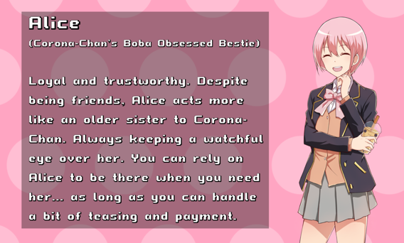 -Character Bios!: Learn more about each of the characters. What they like, don't like, and even things you probably don't even care to learn about!