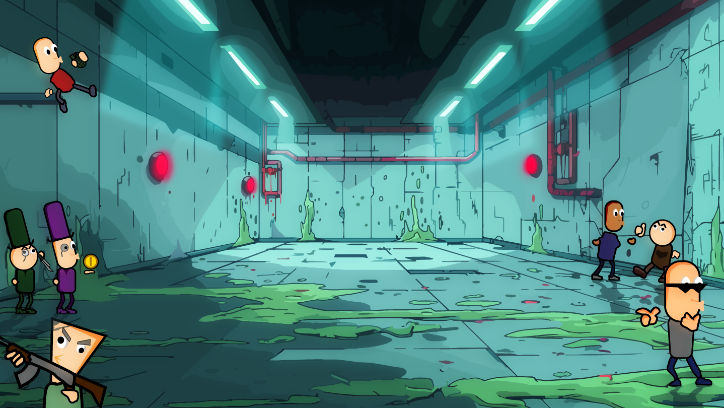 Jhon Digwood is a 2D single-player action platformer with guns, grenades, and a bit of blood. The game requires players to complete various missions. After each mission is completed or failed the player will continue to the next mission while a recording of the player's previous mission gets added to the level. The game continues until the player fails a mission and is out of available tries.