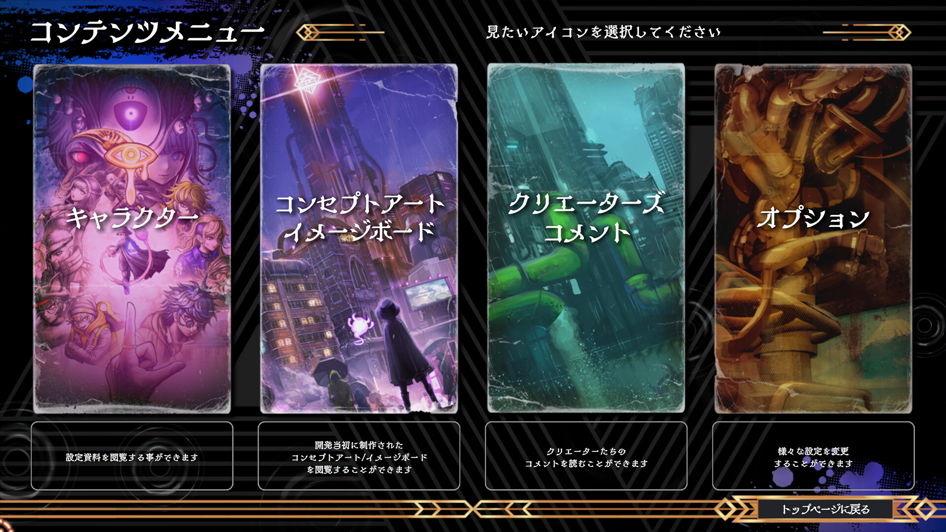 ※デジタルアートブックは「超探偵事件簿 レインコード プラス」本編のネタバレ・初期コンセプトアートを含みます。ゲームクリア後に観賞することをお勧めいたします。
