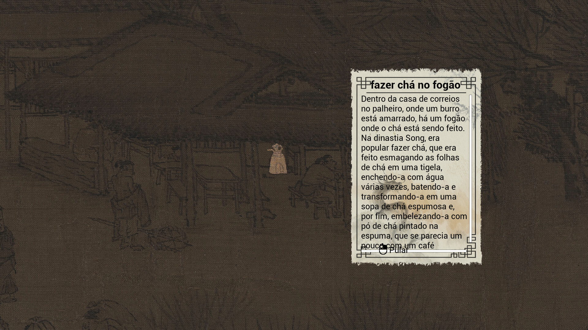 • Muitos objetos e costumes mostrados na antiga pintura não existem mais hoje e só podem ser adivinhados e inferidos a partir de livros existentes e experiência. Naturalmente, existem alguns mistérios não resolvidos que valem a pena discutir e debater. Portanto, o jogo inclui algumas conjecturas não verificadas que podem não se alinhar com as visões convencionais e são interpretações pessoais do autor, fornecidas apenas como referência.