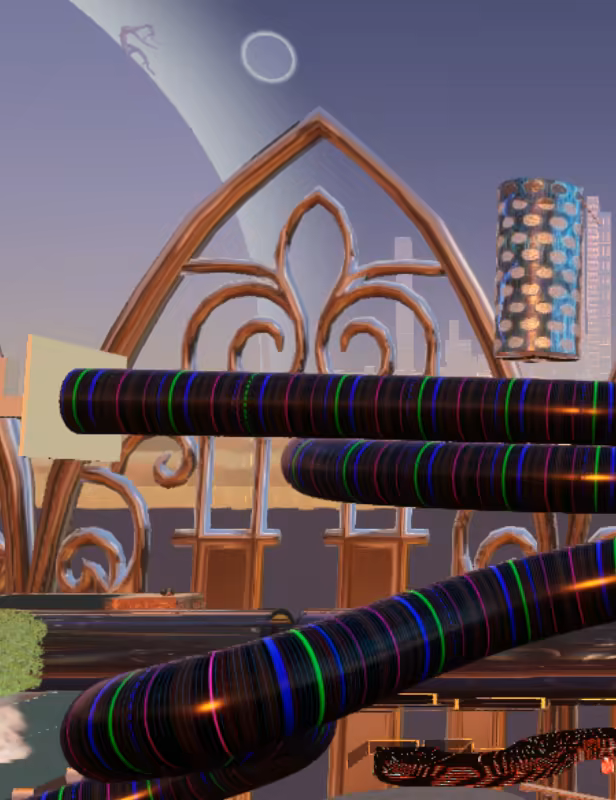 Seomtimes you'll have to surf along slanted surfaces and launch yourself off to reach the next obstacle.